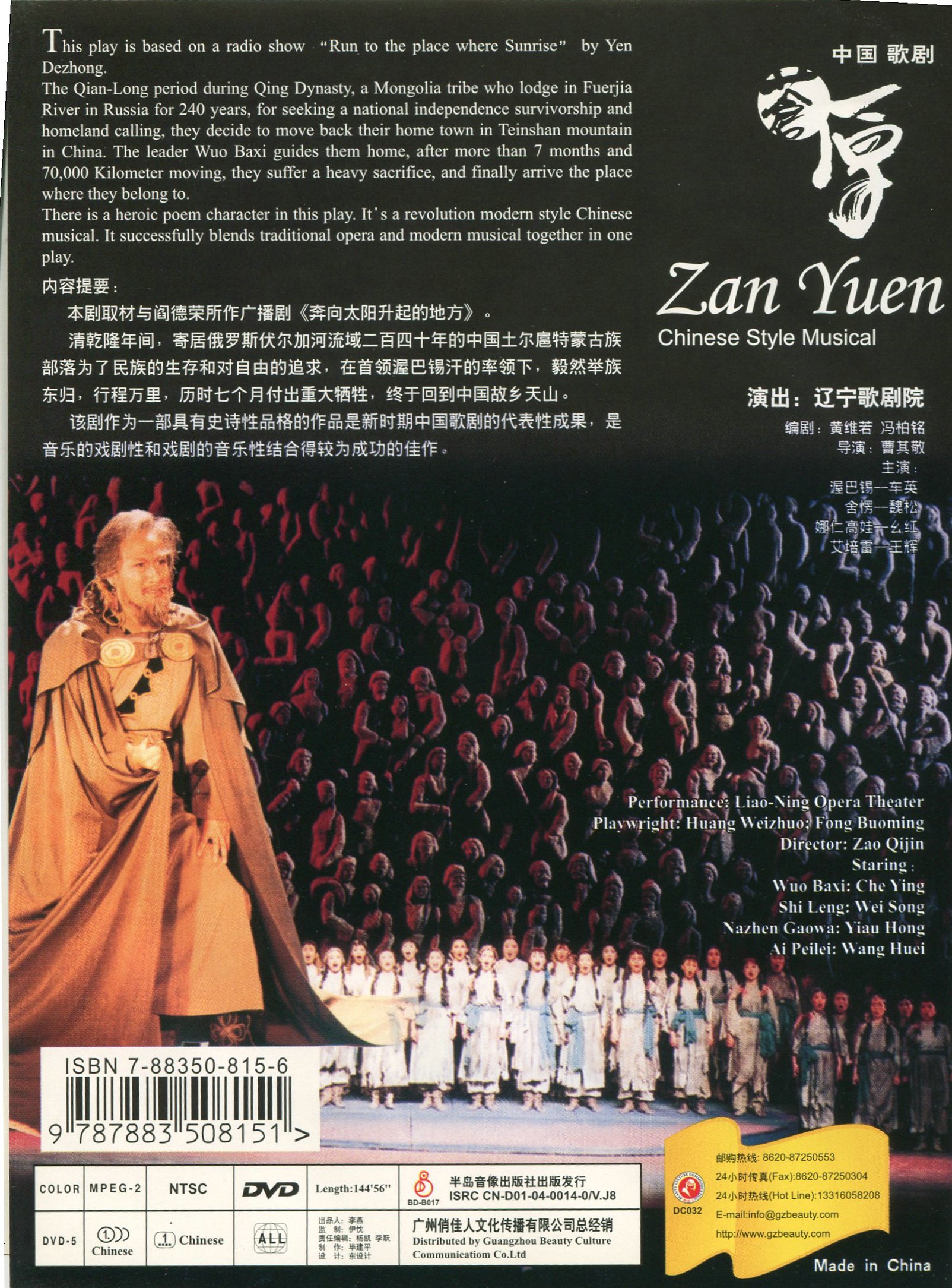 摘要或文摘 :歌剧《苍原》取材于阎德荣所作的广播剧《奔向太阳升起的地方》。讲述了清乾隆年间,寄居俄罗斯伏尔加河流域二百四十年的中国土尔扈特蒙古族部落为了民族的生存和对自由的追求,在首领渥巴锡汗的率领下,毅然举族东归,行程万里,历时七个月,付出重大牺牲,终于回到中国故乡天山。该剧作为一部具有史诗性品格的作品,《苍原》是新时期中国歌剧的代表,是音乐的戏剧性和戏剧的音乐性结合得较为成功的佳作!