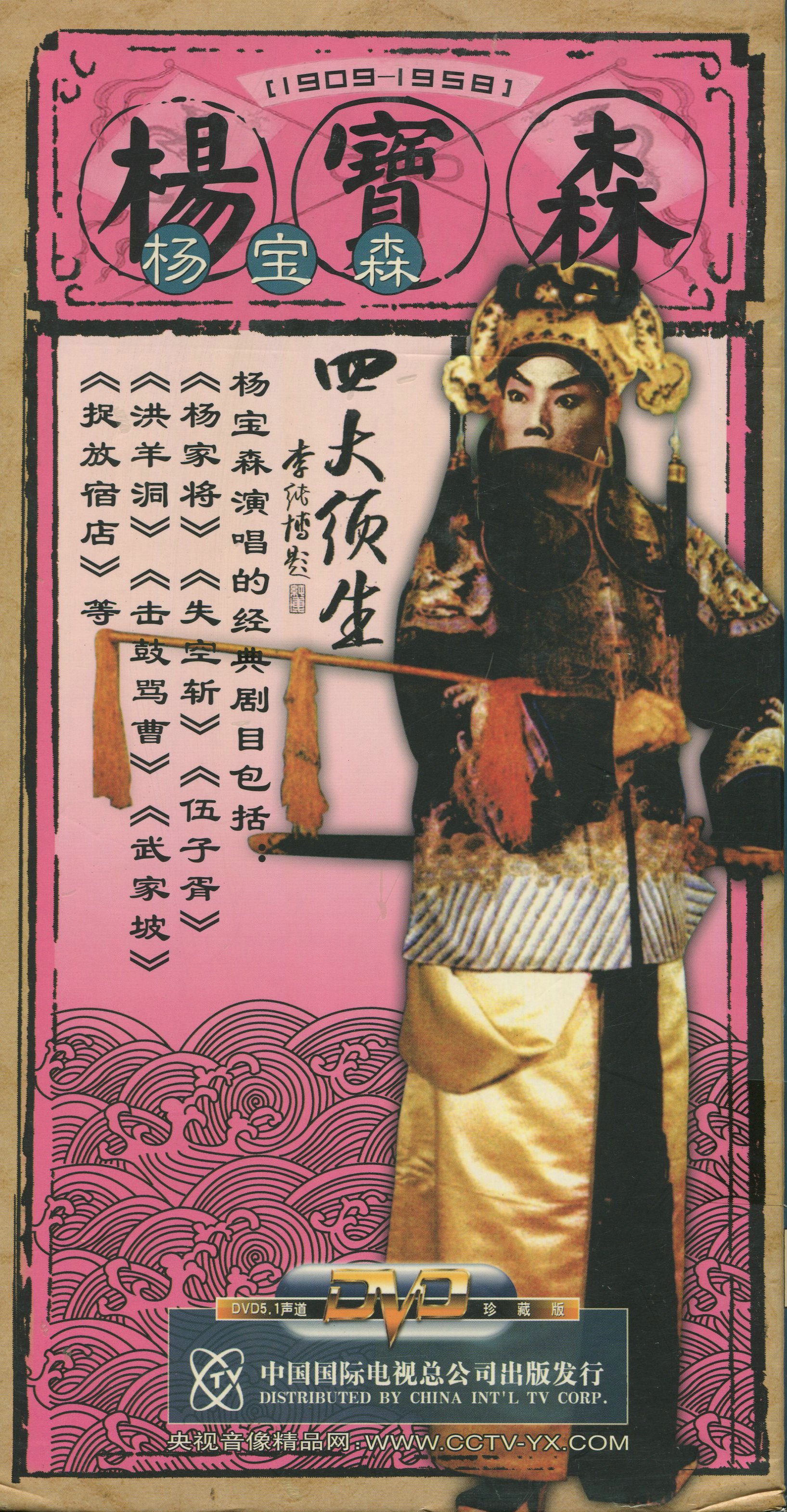 摘要或文摘 :杨宝森(1909-1958),著名京剧表演艺术家,曾任天津市京剧团团长,字钟秀,别号时斋。原籍安徽合肥,祖居北京。他出生于京剧世家,幼年五、六岁便开始随堂兄学戏、练毯子功,后拜裘桂仙为师,又从陈秀华、鲍吉祥习老生,十岁便带艺搭班,长期在俞振庭的斌庆社求艺并演出。…… 三十年代末,杨宝森曾与马连良、谭福英、奚啸伯并称为四大须生,1943年7月,杨宝森在天津中国大戏院挂头牌演出,以《失空斩》,一炮打响,1944年1月,再次以《伍子胥》轰动京城。杨宝森的“四大须生系列”本套共有10张DVD光盘,依次是:1.《失街亭·空城记·斩马谡 1-2》2.《伍子胥1-2》3.《珠帘寨1-2》4.《大保国·探皇陵·二进宫1-2》5.《二堂舍子 打棍出箱》6.《洪羊洞 击鼓骂曹 武家坡》7.《乌盆记 》8.《战樊城 桑园寄子》9.《游龙戏凤 秦琼卖马 二进宫》10.《搜孤救孤 捉放宿店》。