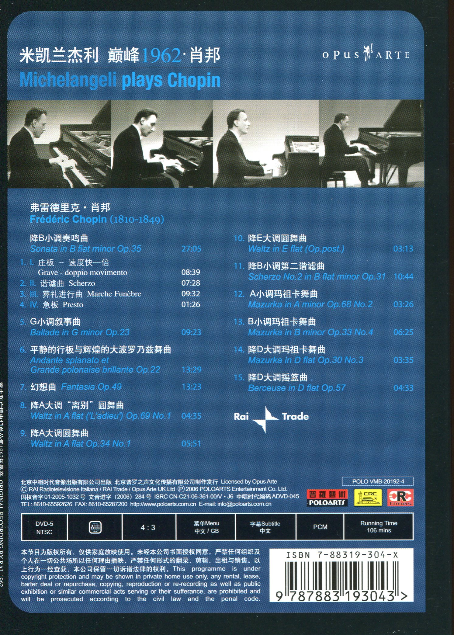 翻译题名 :《米凯兰杰利 巅峰1962 · 肖邦》