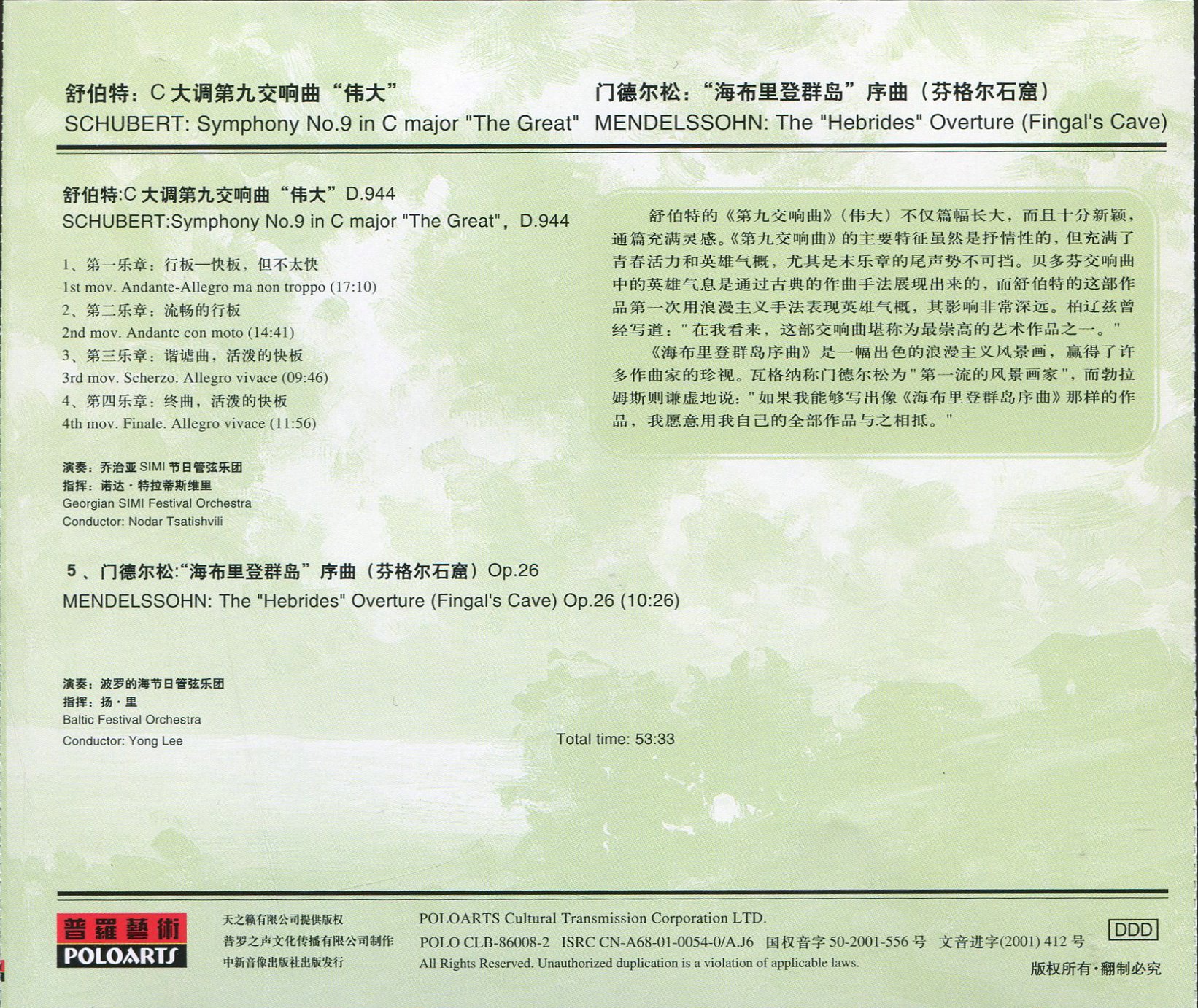 责任者 : Composer:Schubert, Franz; Conductor:Lee, Yong