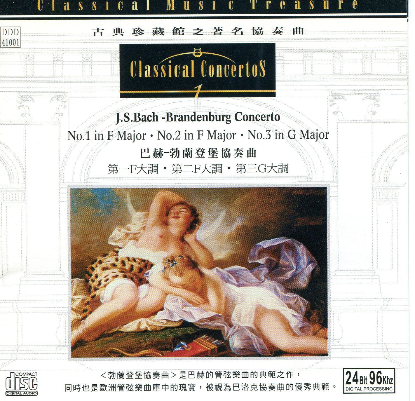 一般性附注 :《勃蘭登堡協奏曲》是巴赫的管弦樂曲的典範之作,同時也是歐洲管弦樂曲庫中的瑰寶,被視為巴洛克協奏曲的優秀典範。
